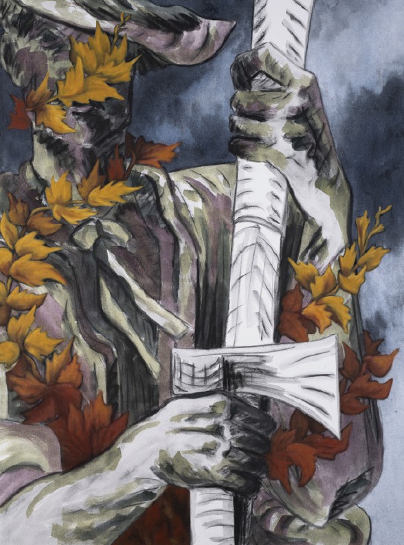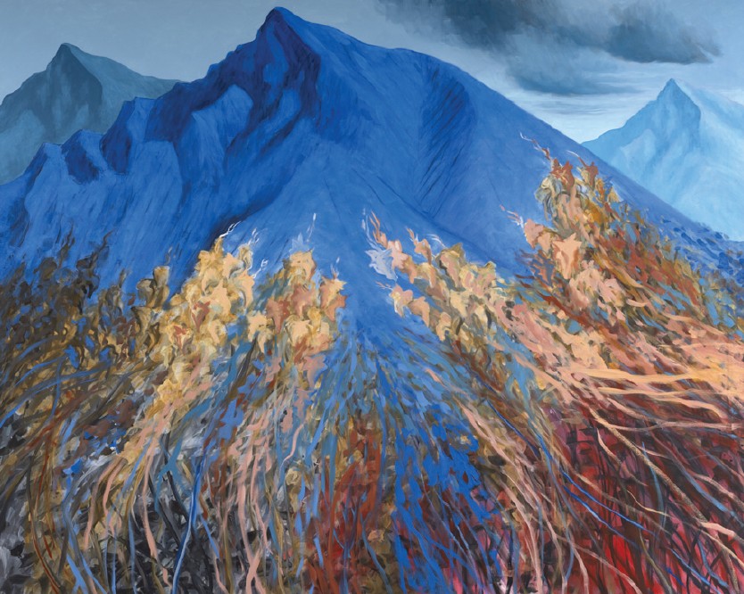 Táto autorská výstava, ktorá je pokračovaním viacročnej partnerskej spolupráce Národnej banky Slovenska s Vysokou školu výtvarných umení v Bratislave, prináša ucelenú sériu Triaškových diel nazvanú „Pod Kriváňom“, ktorá predstavuje jeho štylizovanú figurálnu maliarsku tvorbu za posledné obdobie. Za touto tvorbou môžeme vidieť jedinečnú osobnosť slovenského vizuálneho umenia, vysokoškolského pedagóga a zároveň aj absolventa VŠVU v Bratislave. Farebne i námetovo výrazná maľba je úzko prepojená s kritickým prístupom k slovenskej národnej symbolike, pričom intenzívne skúma jej používanie v súčasnom vizuálnom priestore. Multiplikácia národných symbolov graduje a, v dôsledku výsledného oslabovania ich účinku, zároveň spochybňuje ich význam, ktorý sa stáva akýmsi vizuálnym smogom a vyprázdnenou schránkou či populistickou pózou. Ironicky tak poukazuje a odkazuje na zneužívanie našich národných symbolov v bežnej realite.
