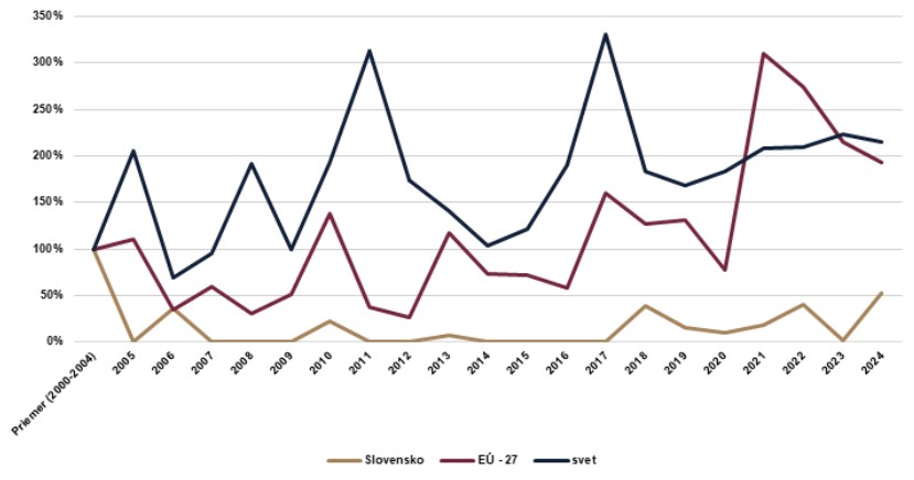 Údaje Európskej environmentálnej agentúry ukazujú, že v Európskej únii (EÚ) bolo tempo podobné a celkový objem škôd sa vyšplhal na 40 miliárd eur v roku 2024. Medzi členskými krajinami sú však výrazné rozdiely. Na Slovensku, ktoré patrí medzi krajiny s nízkym výskytom extrémov, celkové škody, naopak, klesli.