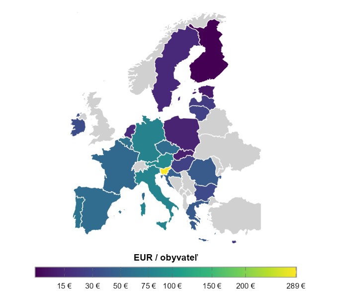 Škody, ktoré extrémne počasie napáchalo na Slovensku, sa počítajú v desiatkach miliónov. Pre verejné financie však nepredstavujú vážnejšiu hrozbu. Podľa EEA dosiahli v EÚ v rokoch 2000 – 2024 priemerné ročné škody 53 eur na osobu, kým na Slovensku to bolo 12 eur. Situácia sa nezmení, ani keď prirovnáme škody k veľkosti ekonomík.