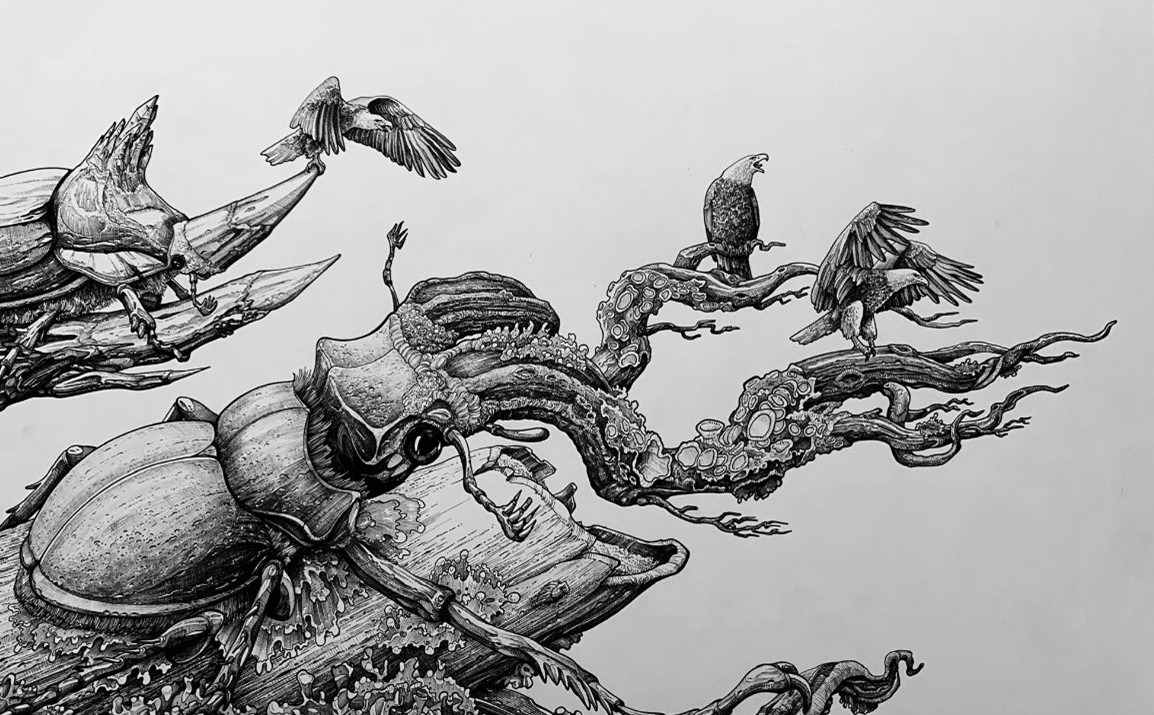 Počas rokov autor pracoval s rôznymi technikami, no najbližší je mu tuš – médium, ktoré podľa neho umožňuje tvoriť diela plné trpezlivosti, vrstiev a symboliky. Jeho charakteristické čiernobiele kresby pozostávajú z tisícov precíznych čiar, vytvárajúcich bohaté šrafované plochy. V jeho kompozíciách sa prepája flóra s faunou, ženské archetypy, symboly a prírodné cykly. V najnovších dielach autor pridáva aj farebné akcenty.