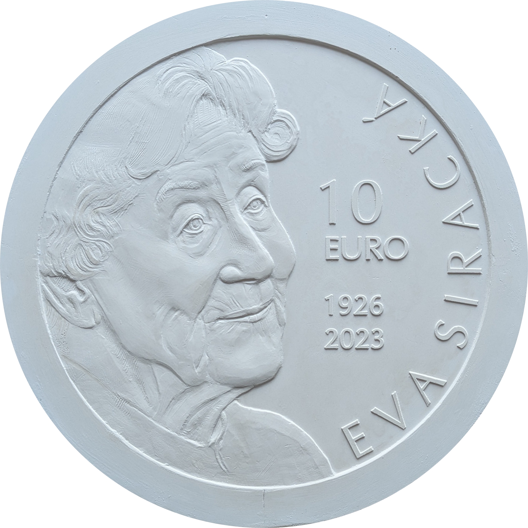 Národná banka Slovenska vyhlásila v máji 2025 verejnú anonymnú súťaž na výtvarný návrh striebornej zberateľskej euromince v nominálnej hodnote 10 eur k 100. výročiu narodenia Evy Sirackej.