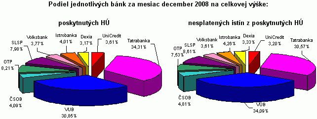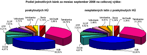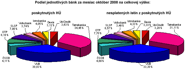 | Podiel jednotlivých bánk na celkovom objeme hypotekárnych úverov v mesiaci: |