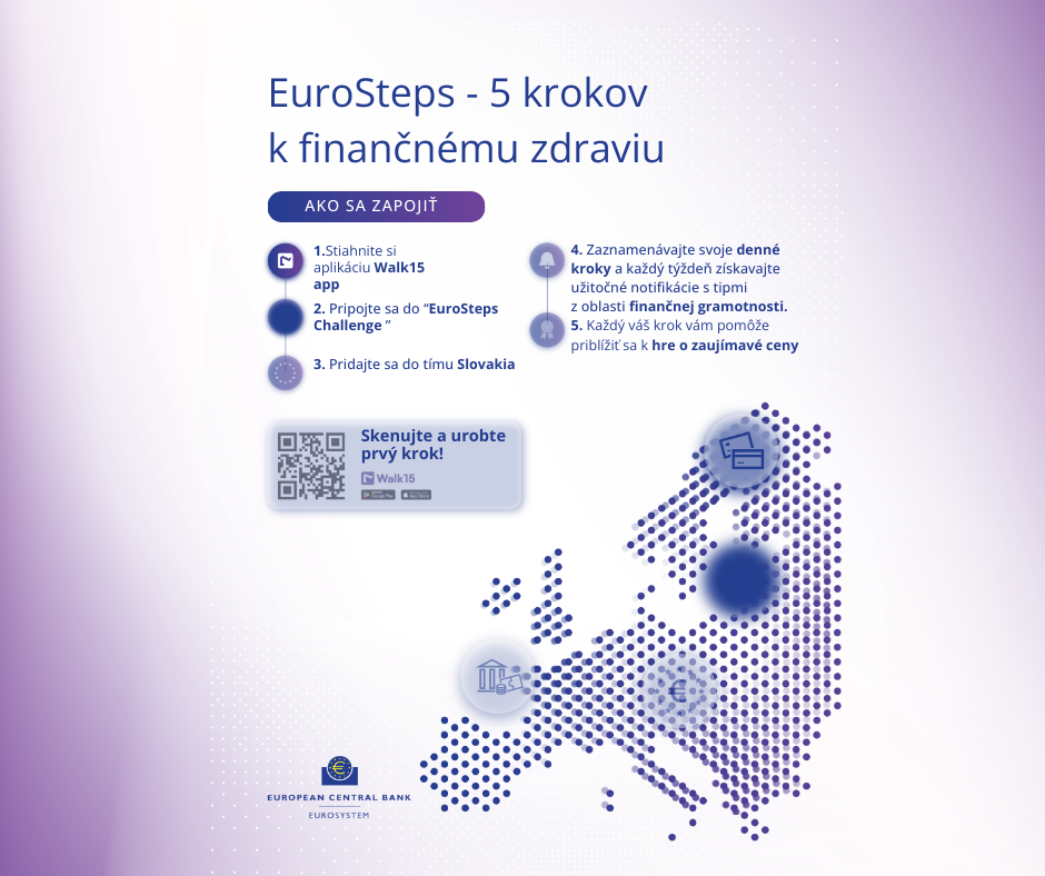 EuroSteps Walking Challenge je celoeurópska pohybová výzva, ktorá prepája zdravý pohyb s finančným vzdelávaním. Účastníci počas apríla zaznamenávajú svoje kroky, získavajú praktické finančné tipy a zároveň reprezentujú svoju krajinu.