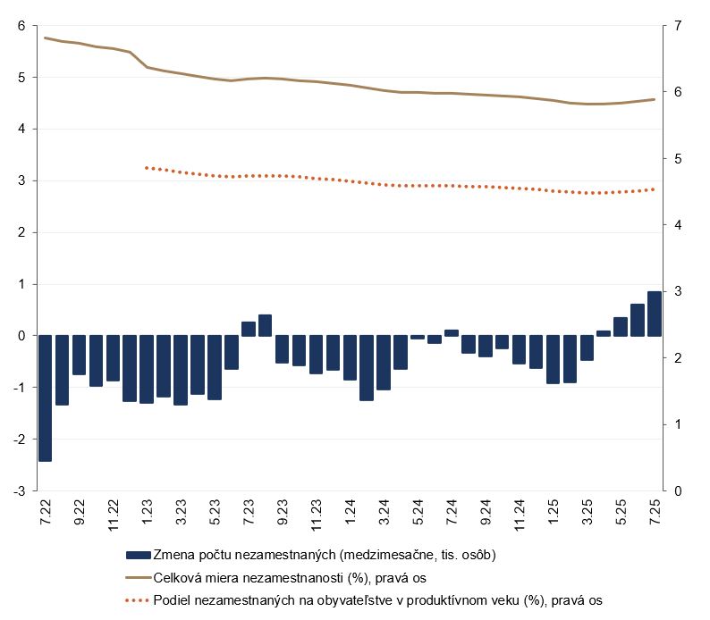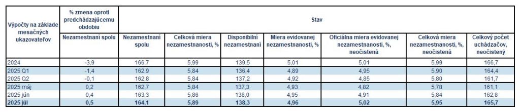 Hoci sa miera nezamestnanosti v júli prakticky nezmenila, situácia na trhu práce sa zhoršuje. Nezamestnaných ľudí pribudlo opäť o niečo viac ako v predchádzajúcom mesiaci.