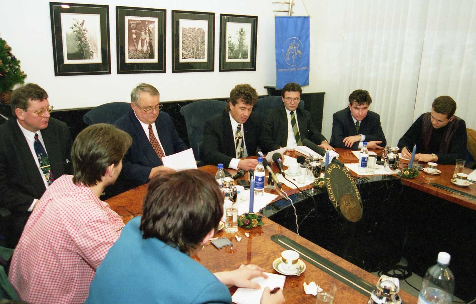 „Náš nástup do trhového systému bol poznamenaný nedostatočnými vedomosťami a skúsenosťami z bankového podnikania, nevyhovujúcim materiálno-technickým vybavením všeobecne a vlastným kapitálovým osobitne, ako aj problémami spojenými s neukončenou delimitáciou ŠBČS, ktorú sa podarilo ukončiť až 30. 9. 1990.“Jozef Mudrík, január 1991