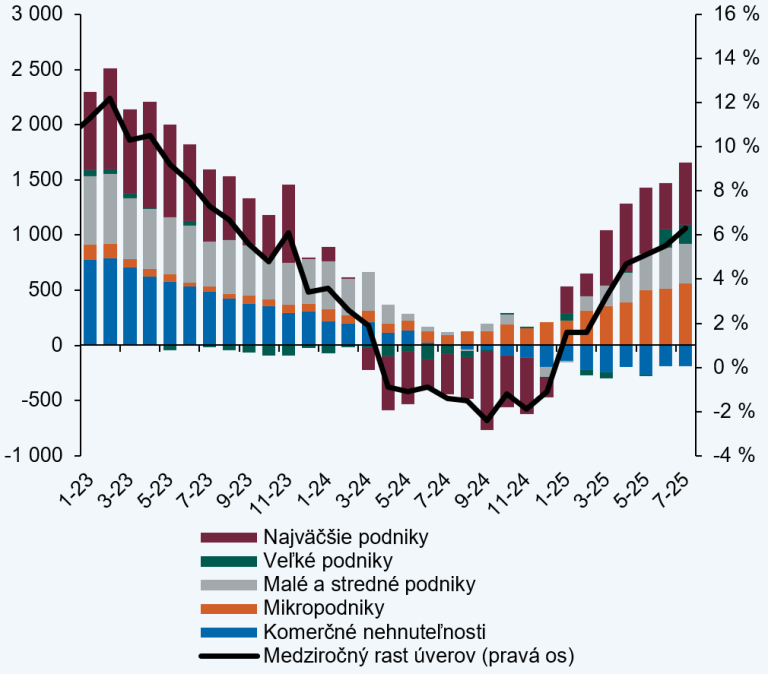 [3] V marci 2025 bolo medziročné tempo rastu spotrebiteľských úverov na úrovni 7,1 %, v júli 2025 to bolo na úrovni 6,5 %. (naspäť do textu)