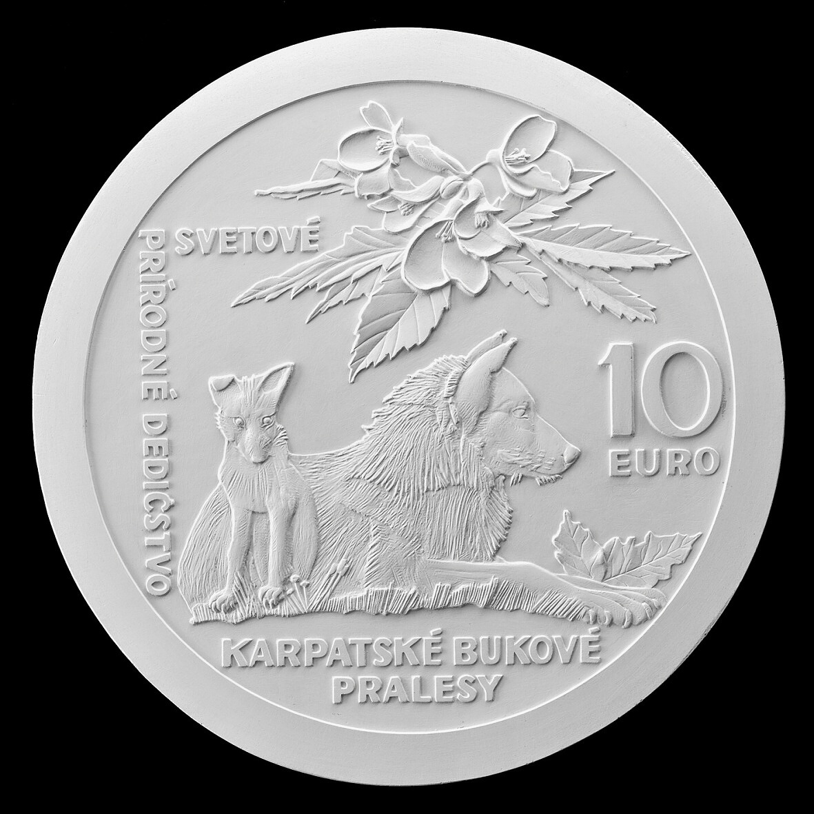 Národná banka Slovenska vyhlásila v decembri 2013 verejnú anonymnú súťaž na výtvarný návrh striebornej zberateľskej mince v nominálnej hodnote 10 eur s tematikou Svetové prírodné dedičstvo – Karpatské bukové pralesy. Táto jedinečná slovensko-ukrajinská lokalita je spolu so starými bukovými lesmi Nemecka zapísaná do Zoznamu svetového kultúrneho a prírodného dedičstva UNESCO. Do súťaže bolo predložených desať výtvarných prác od deviatich autorov. Komisia na posudzovanie výtvarných návrhov pamätných mincí a zberateľských mincí ich hodnotila vo februári 2014. Jej odbornými poradcami boli RNDr. Jana Durkošová, zástupkyňa Ministerstva životného prostredia SR a Ing. Marián Gič, zástupca Správy Národného parku Poloniny.