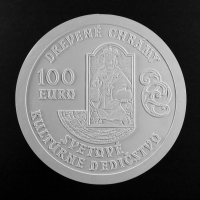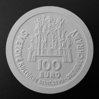 Národná banka Slovenska vyhlásila v júli 2009 verejnú anonymnú súťaž na výtvarný návrh zlatej zberateľskej mince v nominálnej hodnote 100 eur s tematikou Svetové dedičstvo UNESCO – drevené chrámy v slovenskej časti karpatského oblúka. Do súťaže predložilo dvanásť autorov štrnásť výtvarných prác. Komisia guvernéra NBS na posudzovanie výtvarných návrhov slovenských eurových mincí ich hodnotila vo februári 2010.