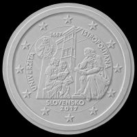 Národná banka Slovenska vyhlásila v decembri 2015 verejnú anonymnú súťaž na výtvarný návrh národnej strany pamätnej mince v nominálnej hodnote 2 eurá k 550. výročiu začatia činnosti Univerzity Istropolitany, prvej univerzity na území dnešného Slovenska. Vznikla z iniciatívy uhorského kráľa Mateja Korvína, ktorý sa na pápeža Pavla II. obrátil so žiadosťou o povolenie zriadiť v Uhorsku univerzitu. Jej vznik schválil pápež v roku 1465 a fungovať začala v roku 1467.