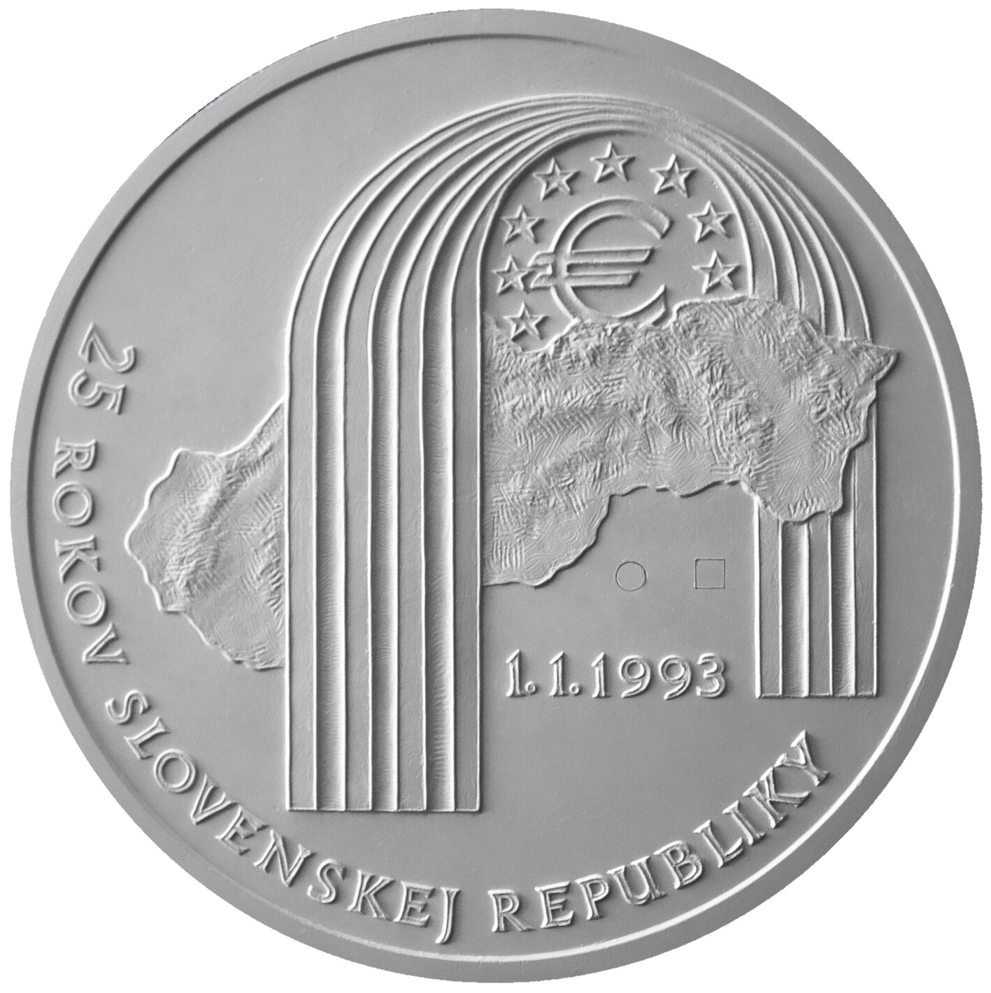 Národná banka Slovenska vyhlásila v novembri 2016 verejnú anonymnú súťaž na výtvarný návrh striebornej zberateľskej mince v nominálnej hodnote 25 eur k 25. výročiu vzniku Slovenskej republiky. Do súťaže bolo predložených osem výtvarných prác od ôsmich autorov. Komisia na posudzovanie výtvarných návrhov pamätných mincí a zberateľských mincí ich hodnotila v januári 2017. Jej odborným poradcom bol Mgr. Matej Hanula, PhD., zástupca Historického ústavu SAV.