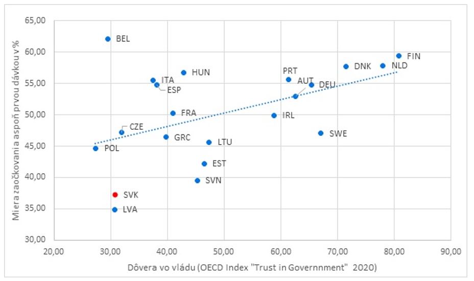 Za nízkou ochotou zaočkovať sa je zrejme aj podstatne hlbší fenomén, a to chýbajúca dôvera obyvateľov vo verejné inštitúcie, ako aj samotný štát. Na základe OECD indexu dôvery vláde z roku 2020 patrí Slovensko na chvost krajín EÚ (index je dostupný pre 22 krajín EÚ).