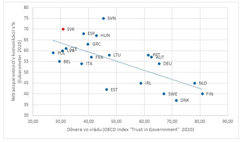 Graf 2: Netransparentnosť komunikácie vs dôvera vláde