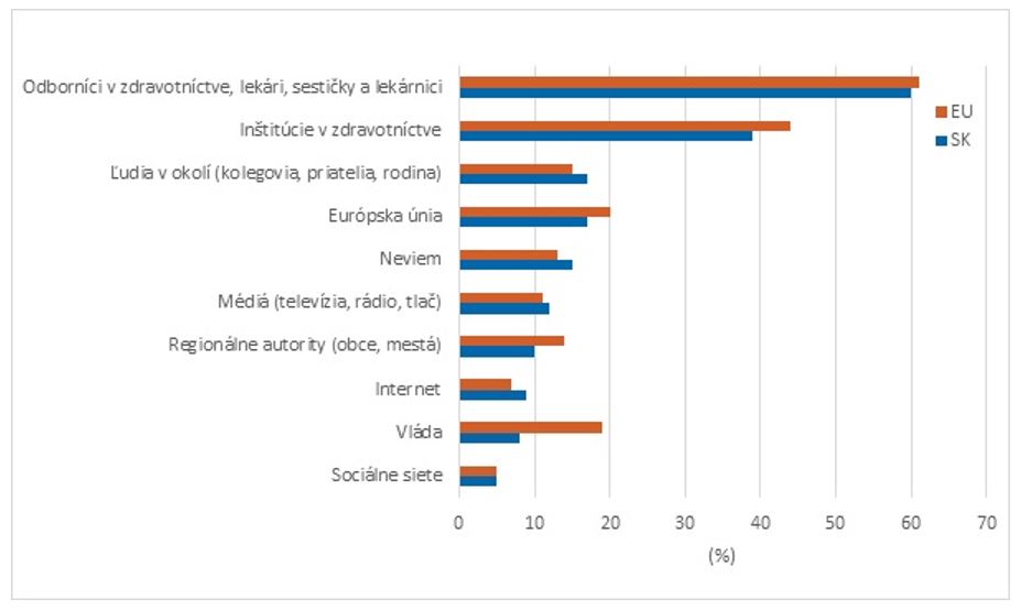 Graf 5: Komu by ste viac dôverovali, aby vám poskytol spoľahlivé informácie o vakcínach COVID-19? (Zdroj: Eurobarometer 2020, EK)